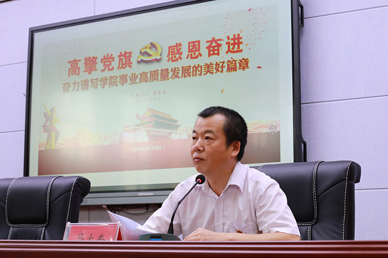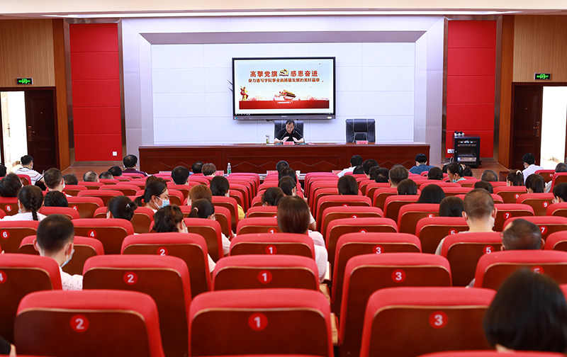为庆祝中国共产党建党99周年,6月30日下午,我院在学术报告厅召开“勇担当、善作为、促发展,以一流成绩庆祝建党99周年大会。会上,学院党委书记李德荣以《高擎党旗,感恩奋进,奋力谱写学院事业高质量发展的美好篇章》为题,为学院广大党员干部上了一堂生动的党课。学院党委班子全体成员、中层干部和全体党员参加学习,大会由学院党委副书记、院长马大奎主持。