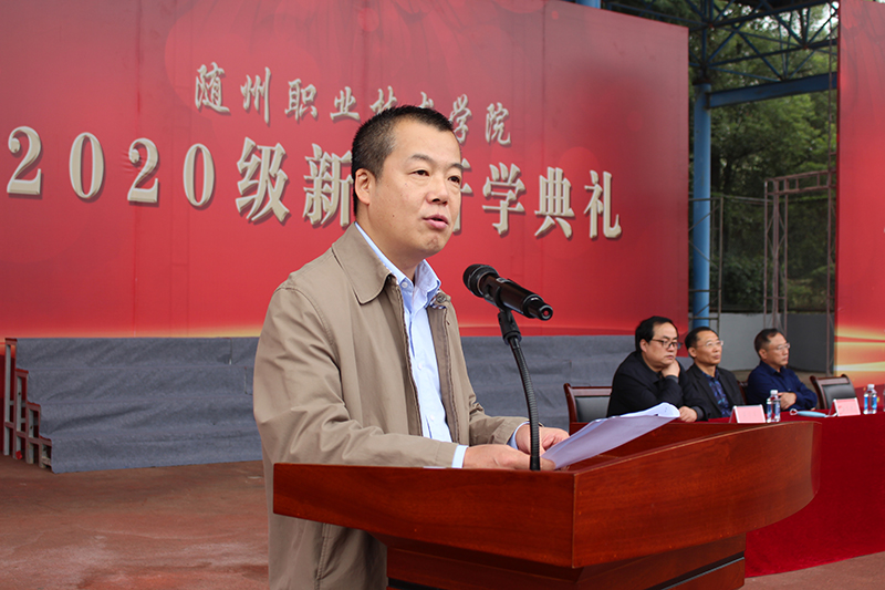 院长马大奎发表讲话。他表示,随州是一座底蕴深厚而又充满现代气息的城市,是一片神奇的土地。而随州职院更是一所朝气蓬勃而又充满魅力的高职院校。他强调,天将降大任于斯人也,同学们出生于“非典”,高考于“新冠”,历经了全所未有的人生考验和高考。虽然大家来自五湖四海、素昧平生,但是今天,同学们都拥有了一个共同的母校——随州职业技术学院,共同的身份——随职人,今天,大家以随职为荣,未来,母校将因你们而自豪!他启迪同学们要坚定信念,志存高远;要涵养品质,提升能力;更要注重锻炼,积极乐观。